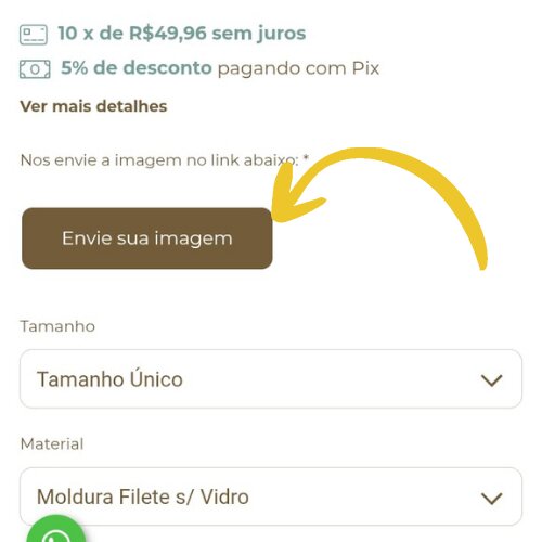 Primeio escolha a foto que nos enviará para produzir o quadro de tamanho maior 50x70cm. Na imagem abaixo ilustra onde clicar para nos enviar a sua foto.