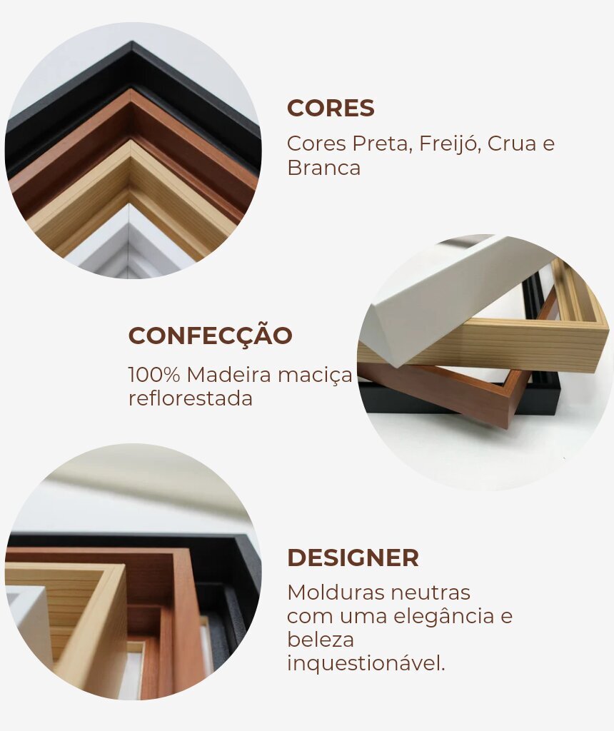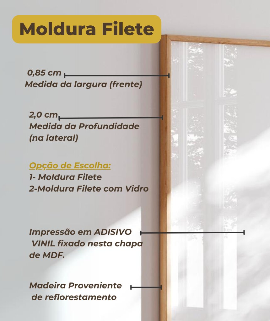 ✅Fundo da moldura em Foam Board de Alta Densidade: trata-se de uma chapa de espuma de poliestireno revestida com papel tipo couchê fosco de pH neutro (obra preservada por mais tempo e livre de fungos/mofo).